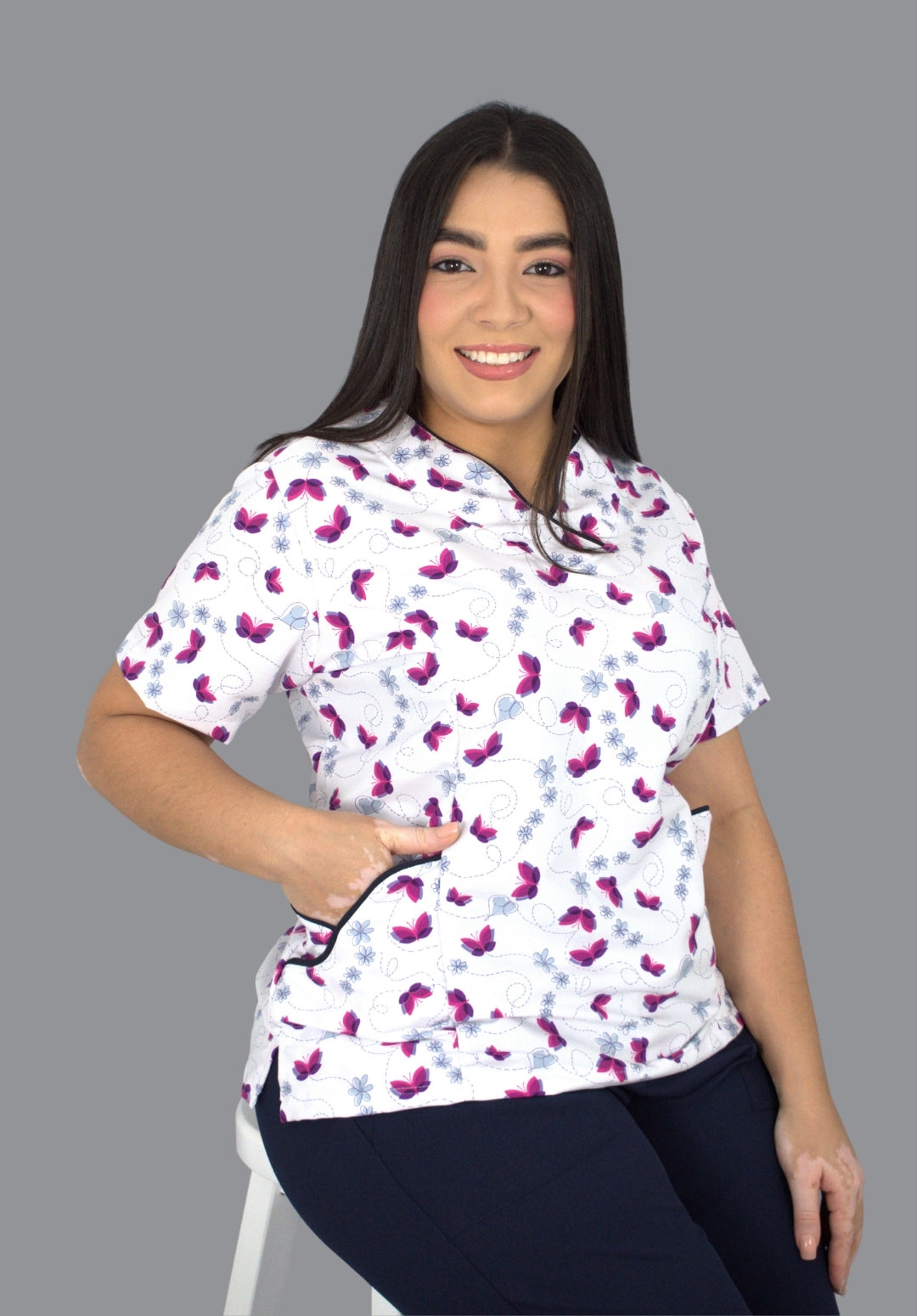Conjunto con blusa estampada, un diseño pensado para profesionales que quieren verse bien y sentirse cómodos durante toda la jornada.